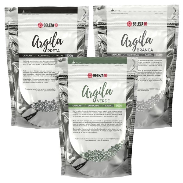 Combo 3 Argilas 500g Branca, Verde e Preta Beleza10