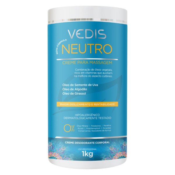 Creme Massagem Neutro Vedis 1kg Hipoalergênico Relaxante Drenagem
