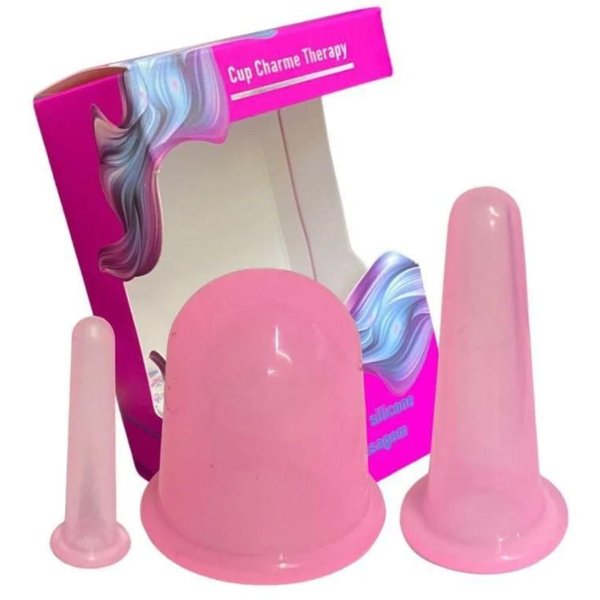 Kit 3 Copos Ventosas De Silicone Massagem Facial e Corporal