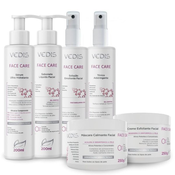 Kit Limpeza de Pele Profissional Face Care Vedis 6 Itens